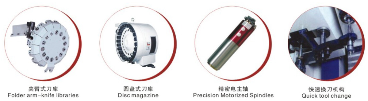 4、刀庫:可選用12-14PCS夾臂式刀庫或者24PCS的圓盤式刀庫。